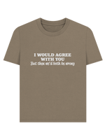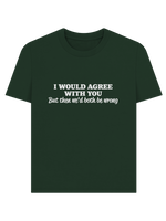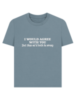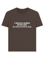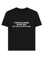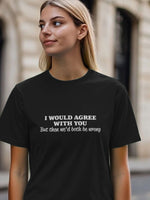 Introducing Teevolution’s Would Agree Women’s T-Shirt – the perfect tee for those who love a good debate (and always win). With the cheeky slogan “I would agree with you, but then we’d both be wrong”, this organic cotton tee is a must-have for anyone with a quick wit and zero patience for nonsense.