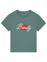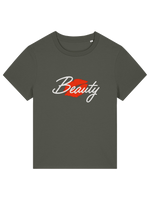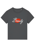 Meet our “Beauty” T-shirt – the ultimate wing woman for your wardrobe! Cut from our soft, vegan-friendly organic cotton, this tee showcases the word “Beauty” in a fab font, playfully adorned with a cheeky kiss. Perfectly matched with our legendary “Beast” T-shirt, it’s a dynamic duo that’s bound to turn heads (and maybe even spark a giggle!).
