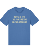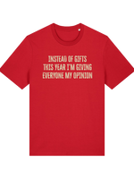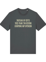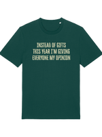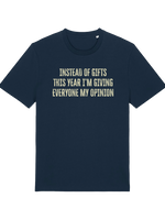 Introducing our legendary "Giving My Opinion T-shirt" – the ultimate festive armour for those lively family gatherings. Forget the mundane gift-giving; this year, proudly declare, "Instead of gifts this year I'm giving everyone my opinion." You’re welcome! This isn't just a funny Christmas t-shirt; it's your official uniform for dishing out sagely (or savagely) honest thoughts around the dinner table.